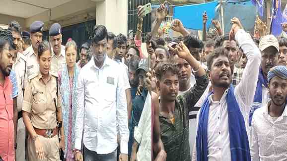 महिलाओं को घर से उठाकर ले जाने के विरोध में आक्रोशित महादलितों ने थाना का किया घेराव
