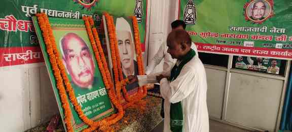 पटना :-आज राष्ट्रीय जनता दल के राज्य कार्यालय में किसान नेता, पूर्व प्रधानमंत्री, भारत रत्न चौधरी चरण सिंह जी की पुण्यतिथि तथा समाजवादी आन्दोलन के पुरोधा भूपेन्द्र नारायण मंडल जी की पुण्यतिथि संयुक्त रूप से प्रदेश अध्यक्ष श्री जगदानन्द सिंह जी की अध्यक्षता में मनायी गयी। इस अवसर पर स्व0 चौधरी चरण सिंह के चित्र पर माल्यार्पण कर श्रद्धांजलि अर्पित की गयी।