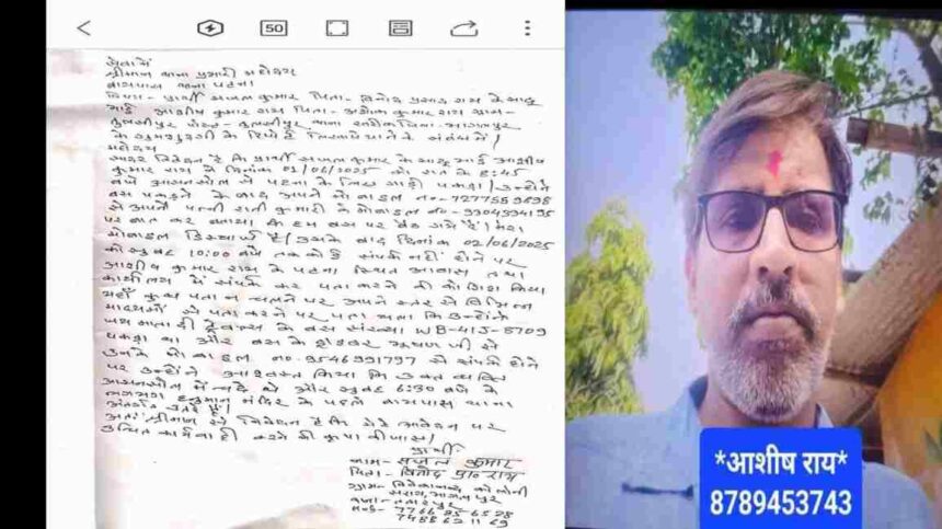 पटना:- आशीष राय एक ऑफिशियल कार्य से पटना से आसनसोल गए थे, कार्य समाप्ति के उपरांत 1 जून को रात्रि में 8:45 बजे आसनसोल से पटना बस से वापस आ…