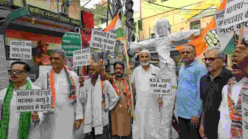 बढ़ते अपराध को लेकर कांग्रेस नेताओं ने मुख्यमंत्री का पुतला फूंका