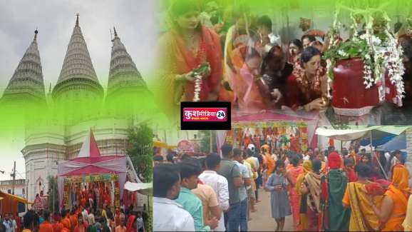 हजारों की संख्या में भक्त बाल्मीकि नगर के त्रिवेणी से गंगा जल भर कर बोल बम का नारा लगाते हुए रामनगर नर्मदेश्वर महादेव मंदिर में जलाभिषेक करते है।