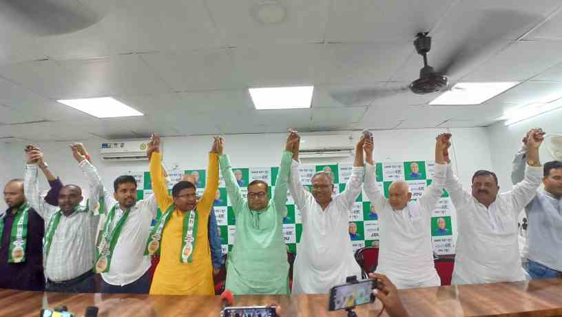 पटना:- गुरुवार को पार्टी प्रदेश कार्यालय, पटना में श्री रवि उज्ज्वल कुशवाहा के नेतृत्व में भारतीय स्वराज मोर्चा का जद(यू0) में विलय हुआ। इस मौके पर पार्टी के राष्ट्रीय महासचिव सह माननीय विधानपार्षद श्री भगवान सिंह कुशवाहा एवं राष्ट्रीय महासचिव श्री मनीष कुमार वर्मा ने भारतीय स्वराज मोर्चा के राष्ट्रीय अध्यक्ष श्री रवि उज्ज्वल कुशवाहा, समाजसेवी श्री आकश कुमार उर्फ राहुल, श्री दीपक कुमार साव, श्री अजीत यादव, श्री जगजीवन राम, श्री आनंद मोहन कुमार उर्फ सोनू कुमार एवं श्री कुणाल शर्मा को जद(यू0) की प्राथमिक सदस्यता दिलाई।