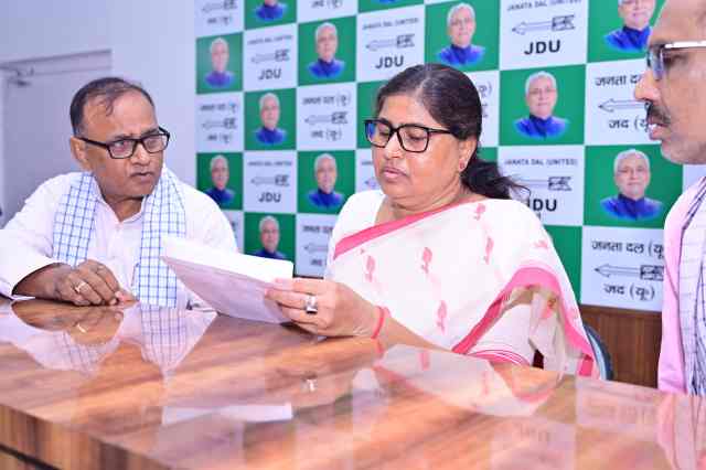 पटना:- मंगलवार को जनता दल (यू0) प्रदेश कार्यालय, पटना में बिहार सरकार की खाद्य एवं उपभोक्ता संरक्षण मंत्री श्रीमती लेसी सिंह ने प्रदेश के विभिन्न जिलों से पहुंचे आमजनों की समस्याओं को सुनकर उनके त्वरित निष्पादन हेतु आवश्यक पहल की। इस मौके पर पार्टी के प्रदेश महासचिव श्री अनिल कुमार एवं वरीय नेता प्रो0 नवीन आर्या चंद्रवंशी एवं मौजूद रहे।