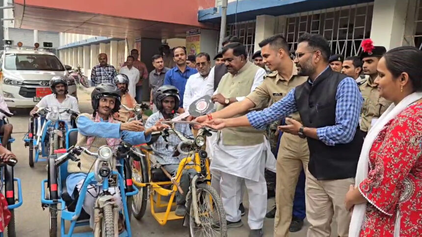 गोपालगंज से नमो नारायण मिश्रा:- गोपालगंज में बिहार सरकार द्वारा चलाई जा रही अभियान बसेरा के तहत 64 भूमिहीन परिवारों के बीच जमीन का पर्चा वितरण किया गया।वही संबल योजना के तहत छः दिव्यांगों को बैटरी द्वारा संचालित ट्राई साइकिल वितरण किया गया।