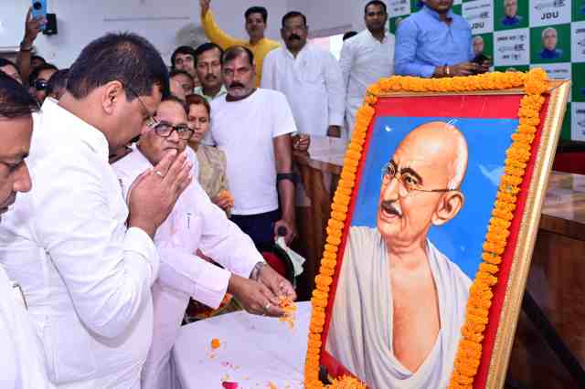 इस मौके पर प्रदेश अध्यक्ष श्री उमेश सिंह कुशवाहा ने कहा कि नीतीश सरकार श्रद्धेय बापू के स्वदेशी, स्वच्छता व ग्राम स्वराज के सपनों को पूरा करने के लिए संकल्पबद्ध है। हमलोगों ने महात्मा गांधी और लाल बहादुर शास्त्री को नहीं देखा। जयप्रकाश नारायण, राम मनोहर लोहिया, डॉ0 भीमराव अंबेदकर और जननायक कर्पूरी ठाकुर के साथ काम नहीं किया लेकिन माननीय मुख्यमंत्री नीतीश कुमार के नेतृत्व में काम करना हम सभी के लिए सौभाग्य और गौरव की बात है। हमारे नेता ने तमाम महापुरुषों के विचारों व आदर्शों का अनुसरण कर अंतिम पंक्ति में खड़े व्यक्ति तक विकास की किरण पहुंचाई है। साथ ही जद(यू0) का हरेक कार्यकर्ता मानव कल्याण की भावना से सच्चाई, सेवा और शांति और सामाजिक सद्भावना की राह पर चलने के लिए प्रतिबद्ध है।