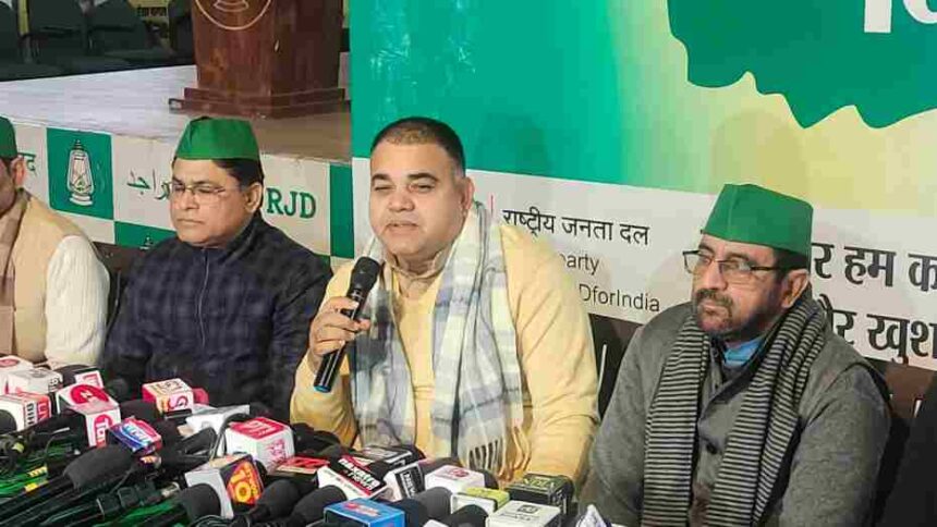 पटना:-बिहार प्रदेश राष्ट्रीय जनता दल के के मुख्य प्रवक्ता शक्ति सिंह यादव ने प्रदेश प्रवक्ता एजाज अहमद, अरूण कुमार यादव, प्रमोद कुमार सिन्हा एवं आरजू खान की उपस्थिति में राजद प्रदेश कार्यलय के कर्पूरी सभागार में संयुक्त संवाददाता सम्मेलन को संबोधित करते हुए कहा कि लगता ही नहीं है कि बिहार में सरकार नाम की कोई चीज है। रिटायर्ड पदाधिकारी, दो दिल्ली और दो बिहार वाले सरकार को अपने अनुसार चला रहे हैं। संस्थागत भ्रष्टाचार का केन्द्र बिहार बन चुका है ,और भ्रष्टाचार हर जगह दिख रहा है। सरकारी खजाने का दुरूपयोग हो रहा है। थोथी दलील के सहारे सरकार चल रही है।