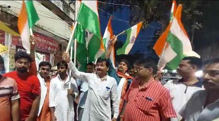 गोपालगंज के शहर के मोनिया चौक पर भाजपा कार्यकर्ताओं ने जमकर जश्न मनाया ।