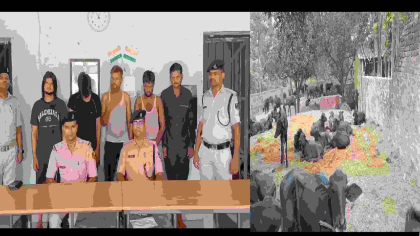 पांच पशु तस्कर को 95 मवेशियों के साथ पुलिस ने किया गिरफ्तार