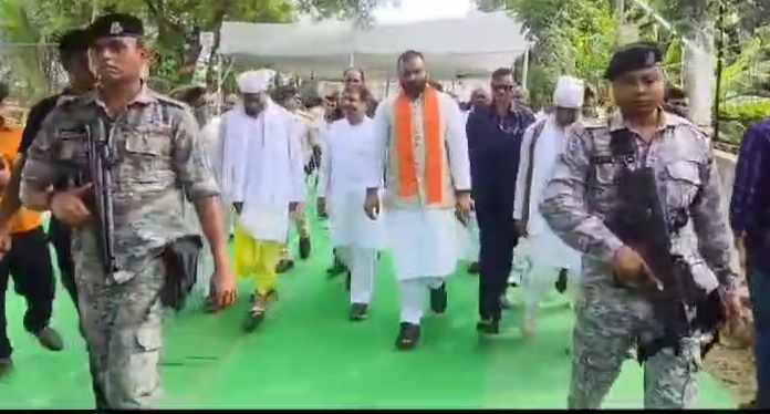 दरभंगा – विकासशील इंसान पार्टी के सुप्रीमो मुकेश सहनी के पिता जीतन सहनी के श्राद्ध कर्म में शामिल होने बिहार के उपमुख्यमंत्री सम्राट चौधरी पहुंचे। इस अवसर पर उनके साथ भाजपा के नव नियुक्त प्रदेश अध्यक्ष दिलीप जायसवाल, उधोग मंत्री नीतीश मिश्रा और जीवेश मिश्रा मौजूद रहे। सम्राट चौधरी ने मुकेश सहनी से मुलाकात कर सांत्वना व्यक्त की और फिर वहां से हेलीकॉप्टर से पटना के लिए रवाना हो गए।