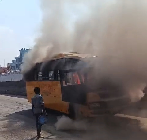स्कूली बस में अचानक लगी आग, मची अफरा तफरी