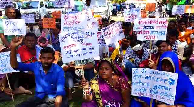 भागलपुर से शयामानंद सिंह :- राष्ट्रीय सफाई मजदूर संघ जिला इकाई भागलपुर के द्वारा आज नगर निगम परिसर में नगर आयुक्त मेयर व उप मेयर के खिलाफ जमकर प्रदर्शन किया, राष्ट्रीय सफाई मजदूर संघ जिला इकाई भागलपुर के अध्यक्ष ने कहा हमारी मांगे हैं हम लोग वर्षों से नगर निगम की सेवा कर रहे हैं उस पर विचार किया जाए और नगर निगम में जो रिक्त पद है उस पर स्थाई नियुक्ति की जाए, हम लोग वर्षों से नगर निगम के लिए काम कर रहे हैं लेकिन हम लोगों को स्थाई नहीं करने के चलते काफी परेशानियों का सामना करना पड़ रहा है यह कहीं से सही नहीं है, प्रदर्शनकारियों ने नगर आयुक्त योगेश सागर के खिलाफ जमकर नारेबाजी की, वहीं मजदूर संघ के अध्यक्ष राजेश हरि ने कहा हम लोगों की संख्या अभी यहां पर प्रदर्शन स्थल पर कम है क्योंकि हमारे सहकर्मी करू हरि का हार्ट अटैक से देहांत हो गया है और उसका मुख्य कारण यही है की जब कारू हरी नगर आयुक्त के पास अपनी फरियाद को लेकर पहुंचे की नगर निगम में सफाई कर्मी के जो रिक्त पद हैं उस पर मुझे अस्थाई रूप से नियुक्त कर लिया जाए लेकिन नगर आयुक्त ने साफ तौर पर मना कर दिया जिसके चलते उनकी वहीं पर हार्ट अटैक आने से तबियत बिगड़ गई और घर जाने के बाद उसकी मृत्यु हो गई।