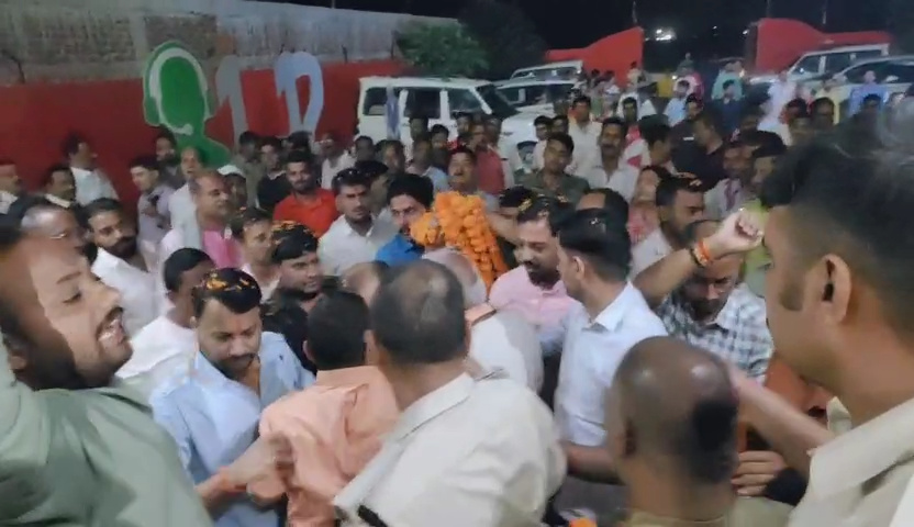 लोकसभा प्रत्याशी व राज्यसभा सांसद विवेक ठाकुर के आगमन पर जमकर हुई आतिशबाजी